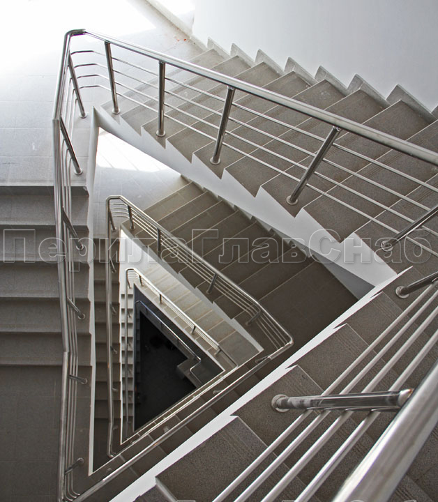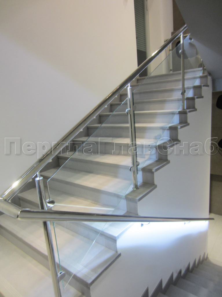Ограждение для лестницы из нержавейки с зажимными стеклодержателями для крыльца в Перми. Готовые проекты ПерилаГлавСнаб