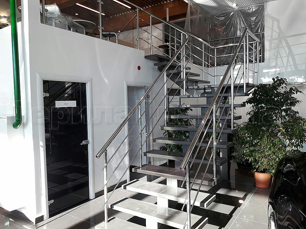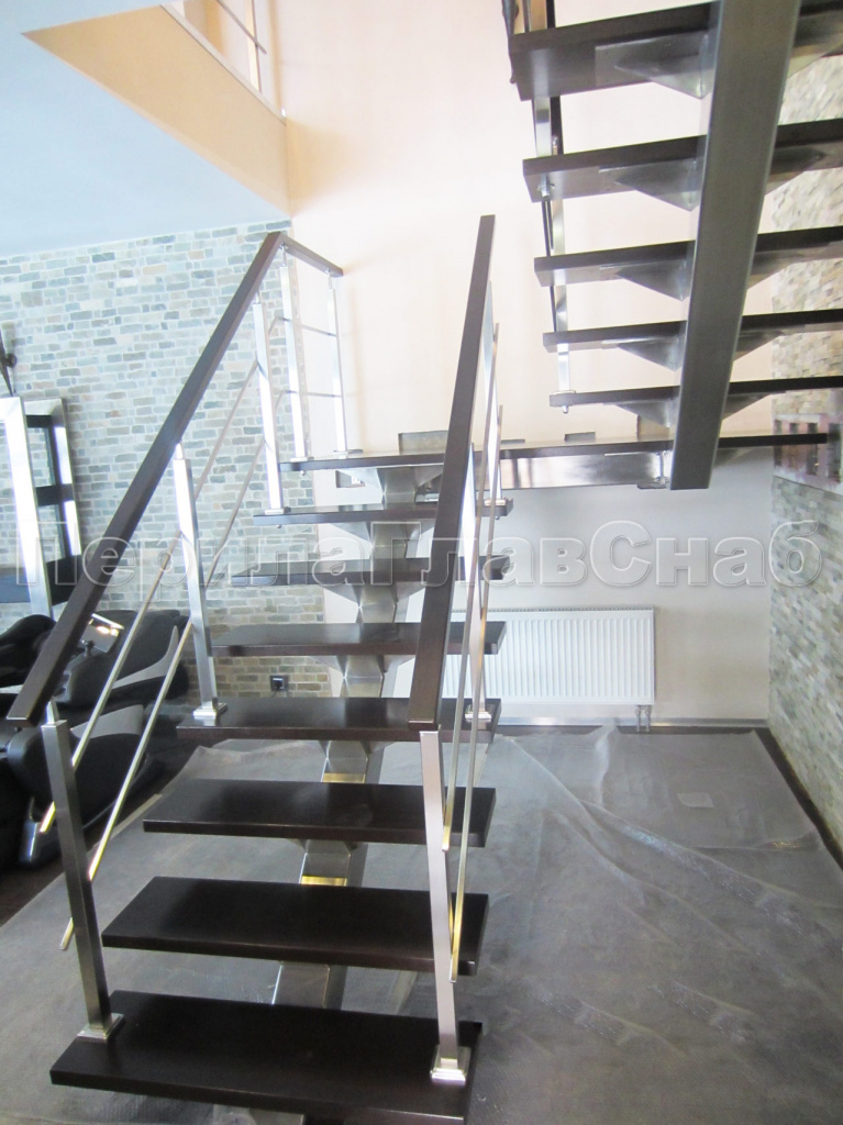 Ограждение лестницы с квадратными стойками и пластинчатыми стеклодержателями в Перми. Готовые проекты ПерилаГлавСнаб - фото 1 Ограждение лестницы с квадратными стойками и пластинчатыми стеклодержателями в Перми. Готовые проекты ПерилаГлавСнаб - фото 2