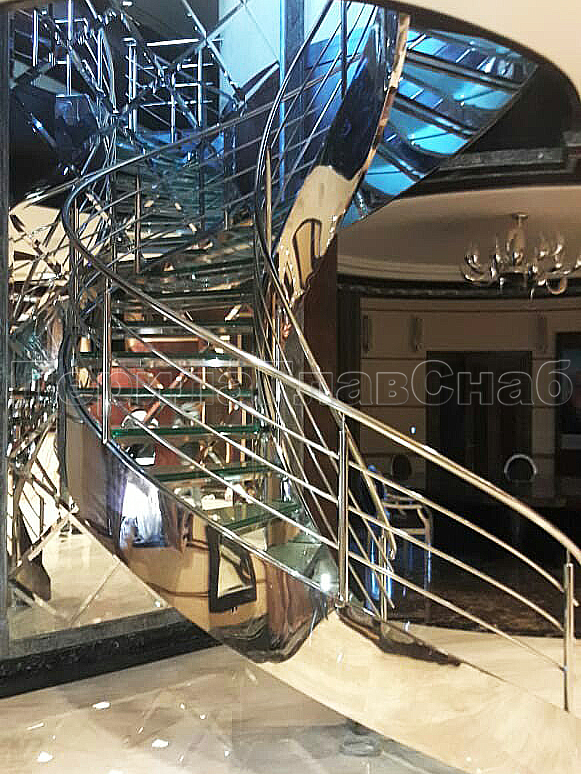 Стеклянные ограждения винтовой лестницы и баллюстрады в Перми. Готовые проекты ПерилаГлавСнаб