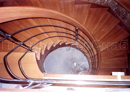 Ограждения с двумя стойками в каждую ступень с деревянным поручнем и без ригелей