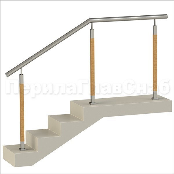 Записаться на встречу Нержавеющие ограждения без ригелей с круглым поручнем и стойками с деревянными вставками