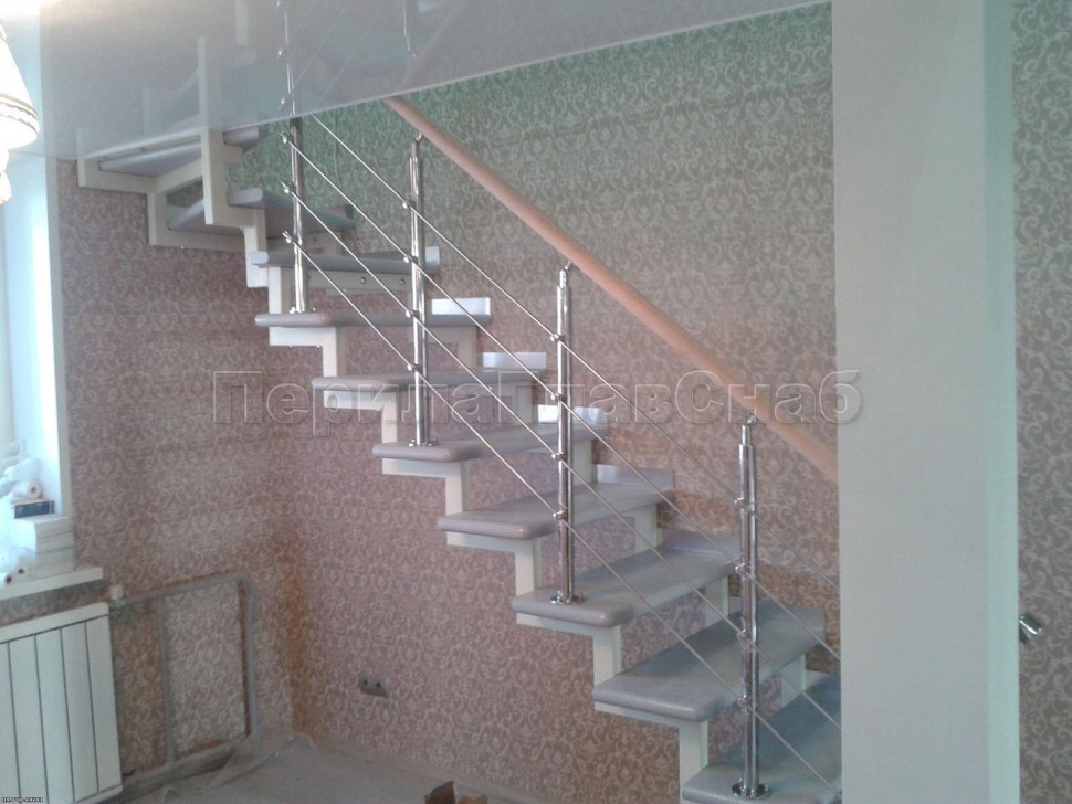 Записаться на встречу Четыре ригеля на держателях, круглый деревянный поручень и круглые стойки
