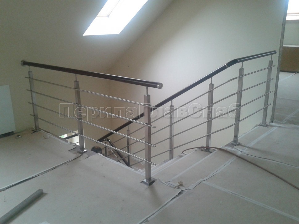 Записаться на встречу Четыре ригеля на держателях, круглый пластиковый поручень и квадратные стойки