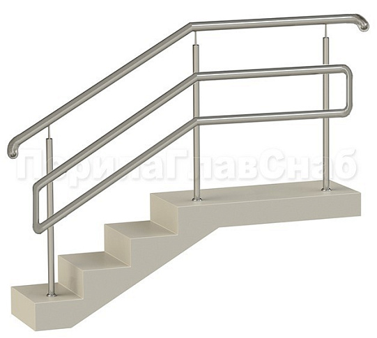 Два ригеля на держателях, круглый поручень и квадратные стойки