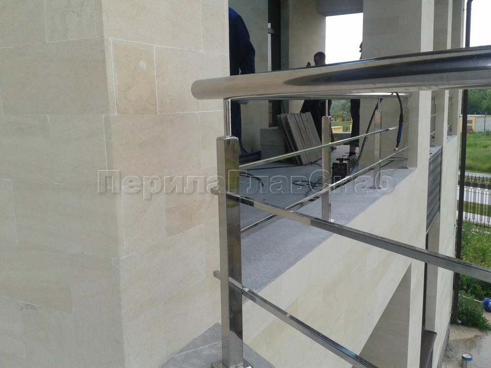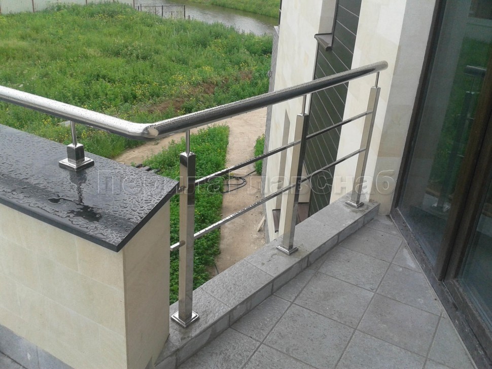 Четыре ригеля на сварке, круглый поручень и квадратные стойки