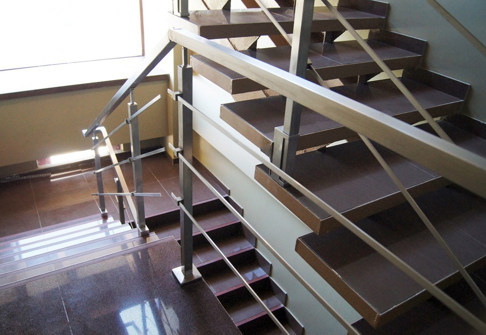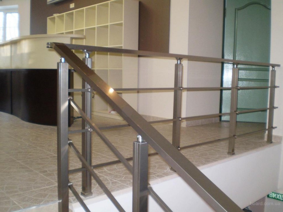 Записаться на встречу Два ригеля на держателях, квадратный поручень и круглые стойки