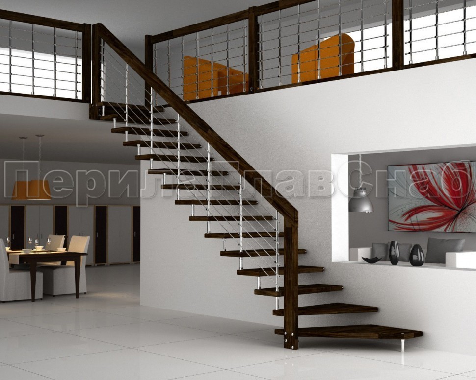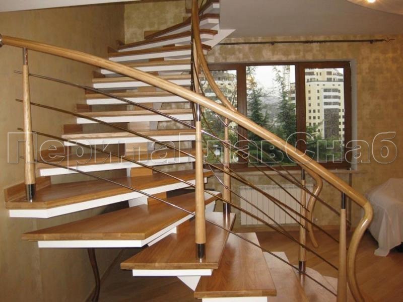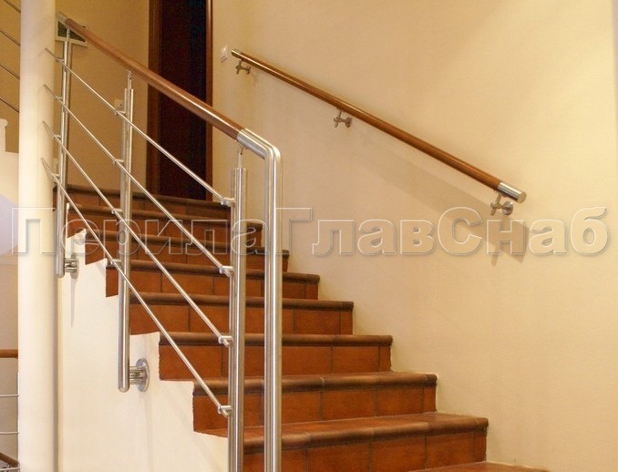Записаться на встречу Четыре ригеля на держателях, круглый деревянный поручень и квадратные стойки