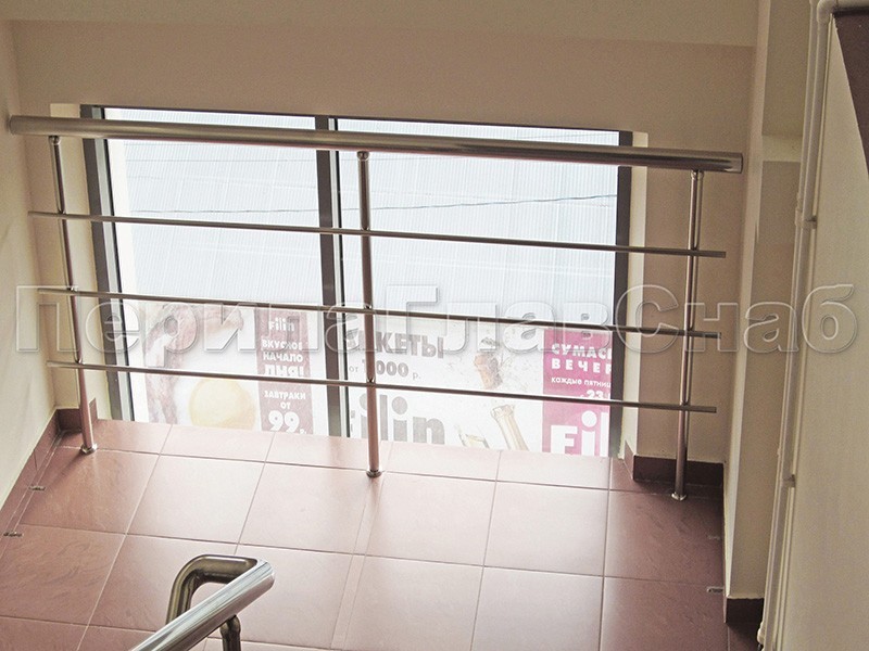 Ограждение окон из нержавеющей стали с ригелями мужет быть установлено как на круглые так и на квадратные нержавеющие стойки или стойки с декоративными вставками. Ограждения оконных проемов фиксируются стойками в пол и надежно закрепляются закладными деталями и хим. анкером.