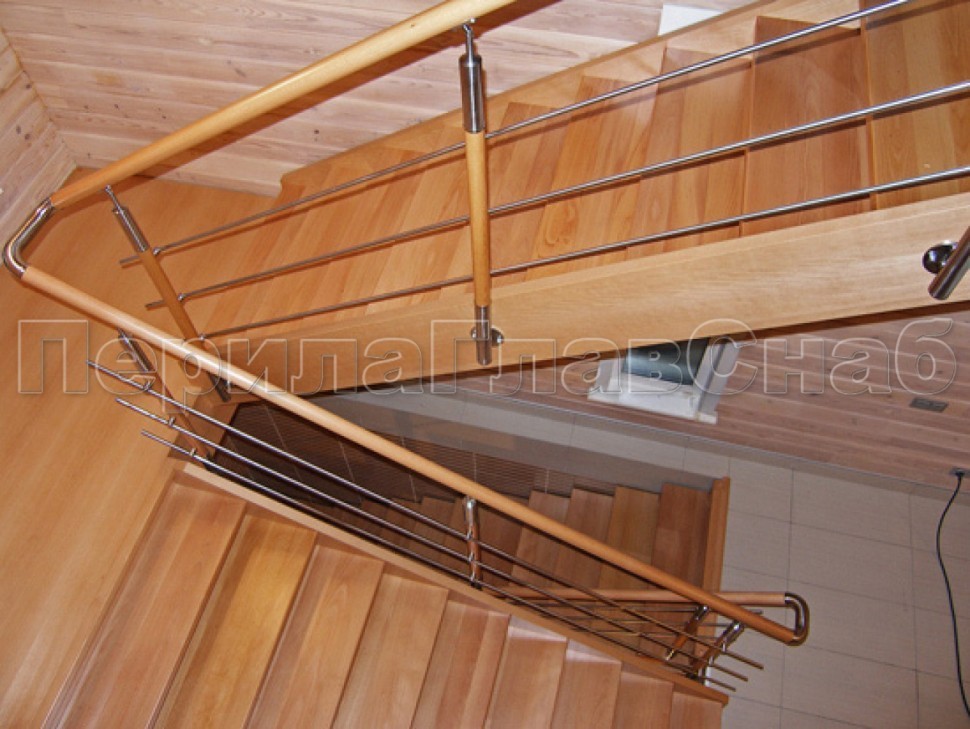 Ограждения со стойками в каждую ступень с круглым деревянным поручнем без ригелей