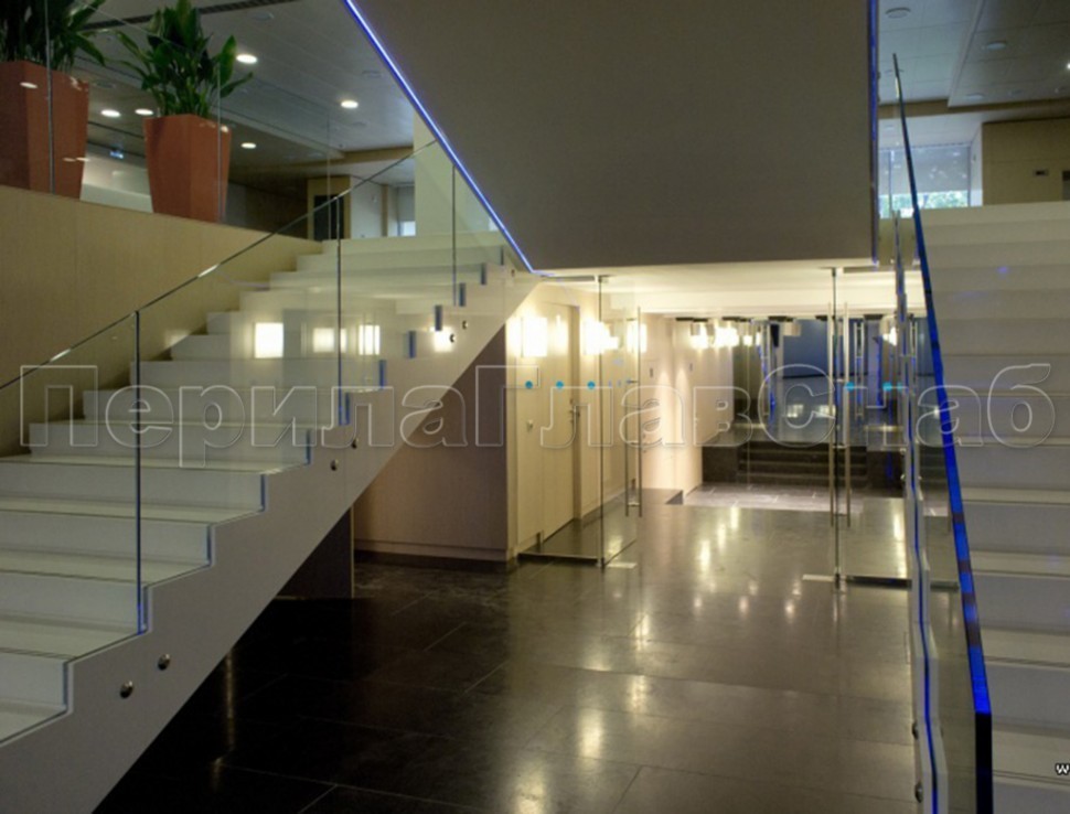 Стеклянные ограждения винтовой лестницы и баллюстрады