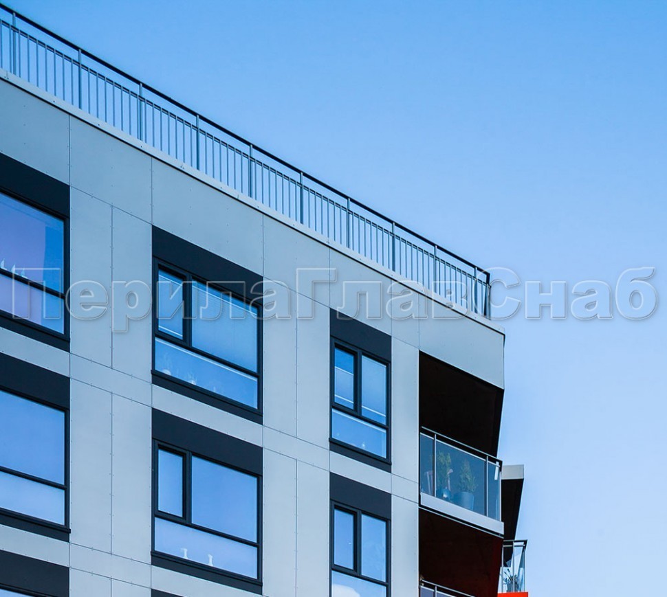 Ограждение кровли на несущем стекле и алюминиевом профиле