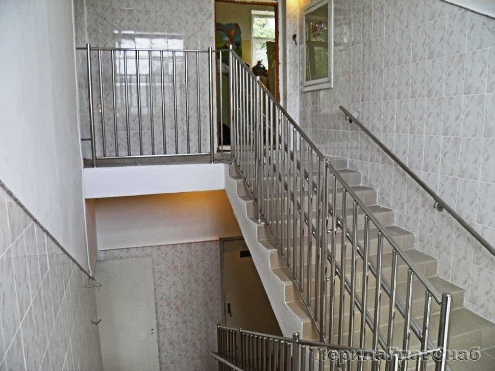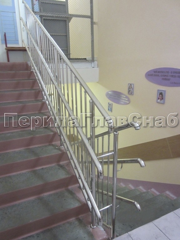 Нержавеющие ограждения для школ и детских садов с вертикальным заполнением “Частокол” - вариант №1 для крыльца в Перми. Готовые проекты ПерилаГлавСнаб - фото 1 Нержавеющие ограждения для школ и детских садов с вертикальным заполнением “Частокол” - вариант №1 для крыльца в Перми. Готовые проекты ПерилаГлавСнаб - фото 2