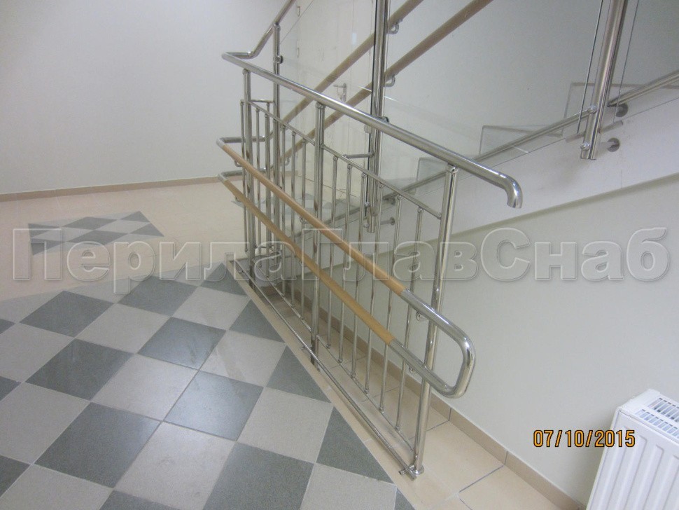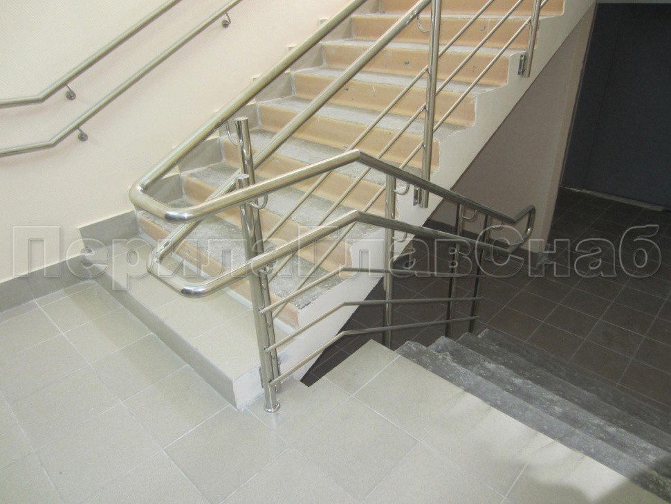 Двойной пристенный поручень из нержавейки в Перми. Готовые проекты ПерилаГлавСнаб