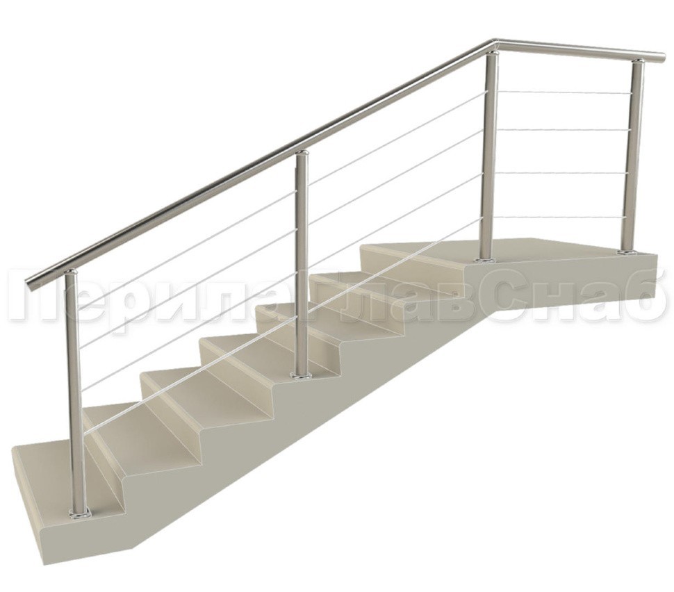 Ограждения из нержавейки. Заполнение из 3х тросиков. Квадратные стойки.