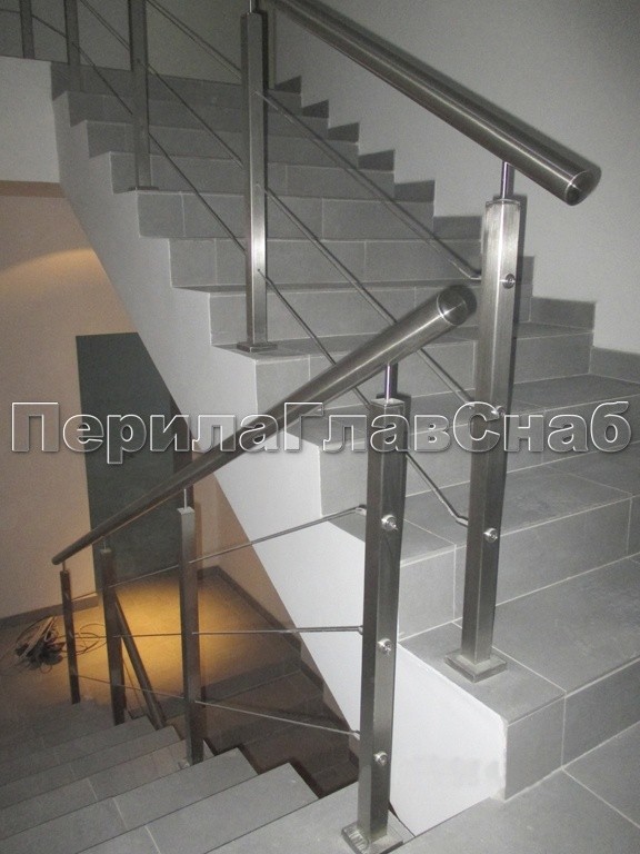 Ограждения из нержавейки. Заполнение из 4х тросиков. Квадратные стойки.
