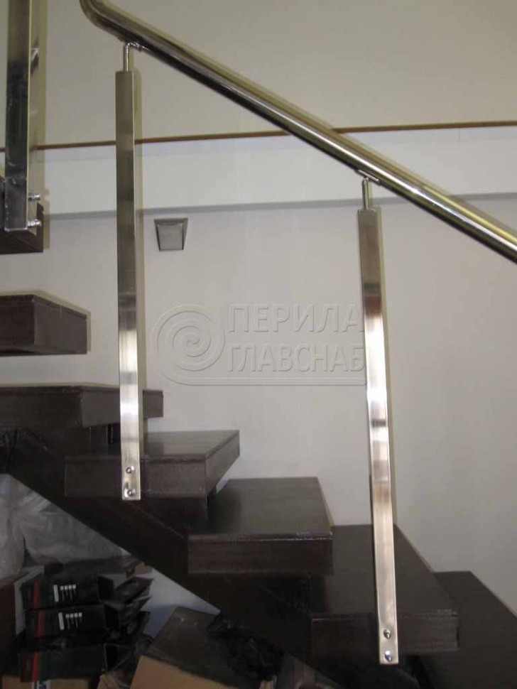 Ограждения с квадратным поручнем со стойками в каждую ступень без ригелей