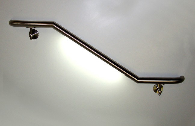 В базовой модели поручня с подсветкой используется полированная сталь, но можно выбрать шлифованную или матированную поверхность типа «сатин».