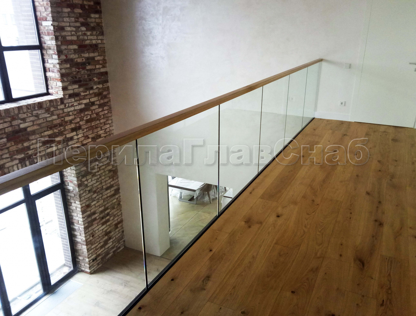 Ограждение с квадратным деревянным поручнем на точечном креплении в Перми. Готовые проекты ПерилаГлавСнаб