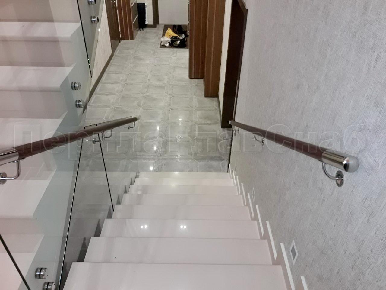 Ограждение с деревянным поручнем на точечном креплении на лестнице в Перми. Готовые проекты ПерилаГлавСнаб - фото 1 Ограждение с деревянным поручнем на точечном креплении на лестнице в Перми. Готовые проекты ПерилаГлавСнаб - фото 2