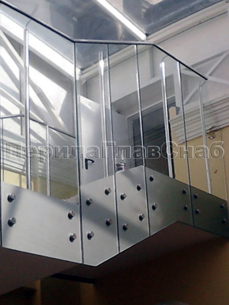 Ограждение без поручня на точечном креплении на лестнице