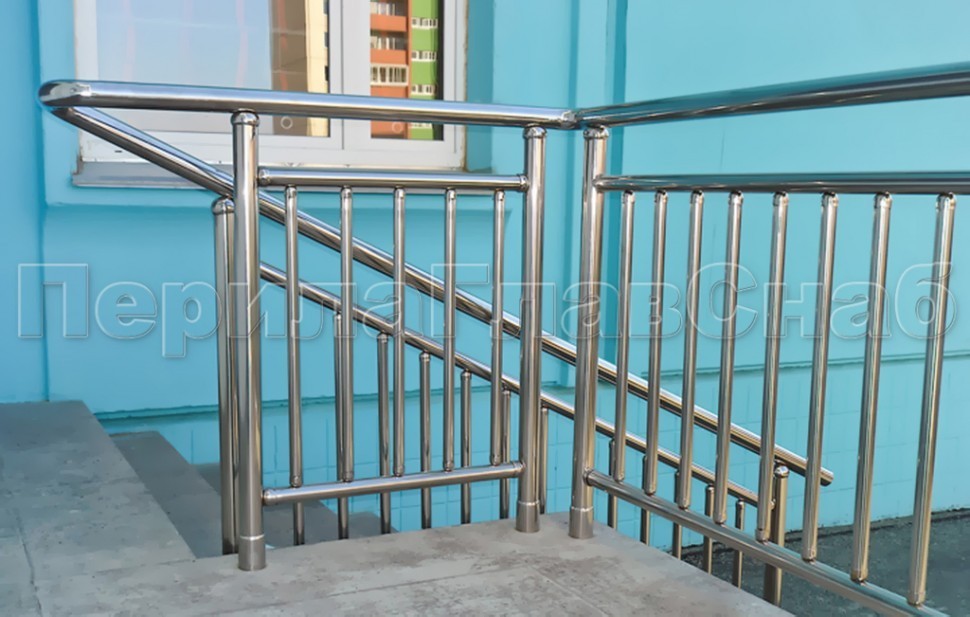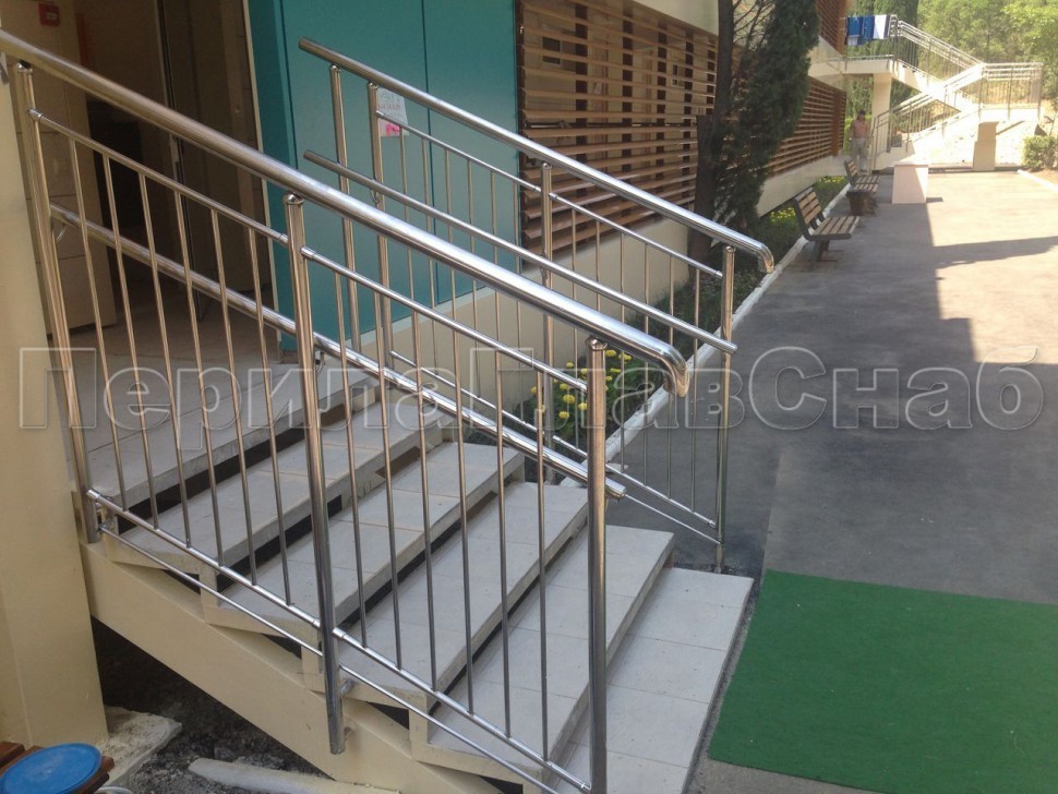 Нержавеющие ограждения для школ и детских садов с вертикальным заполнением “Частокол” - вариант №1 для крыльца