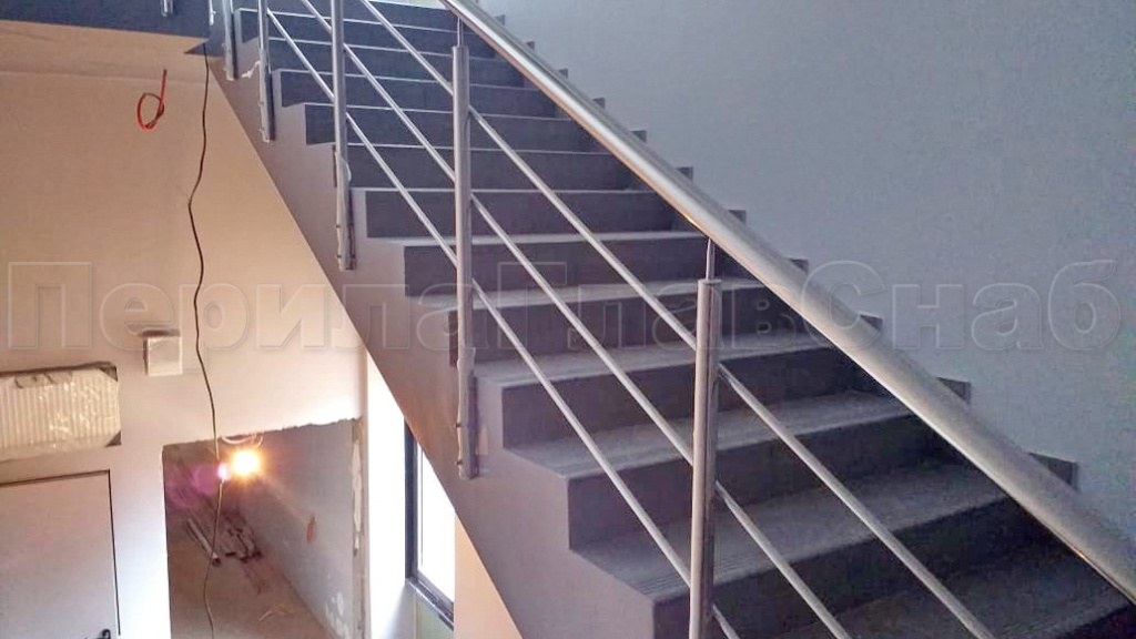 Три ригеля на держателях, круглый поручень и круглые стойки для крыльца в Перми. Готовые проекты ПерилаГлавСнаб