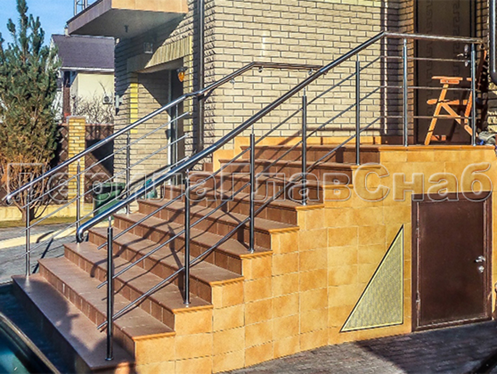 Три ригеля на держателях, круглый поручень и круглые стойки для крыльца в Перми. Готовые проекты ПерилаГлавСнаб - фото 1 Три ригеля на держателях, круглый поручень и круглые стойки для крыльца в Перми. Готовые проекты ПерилаГлавСнаб - фото 2