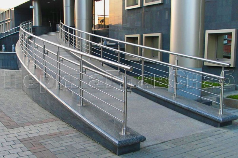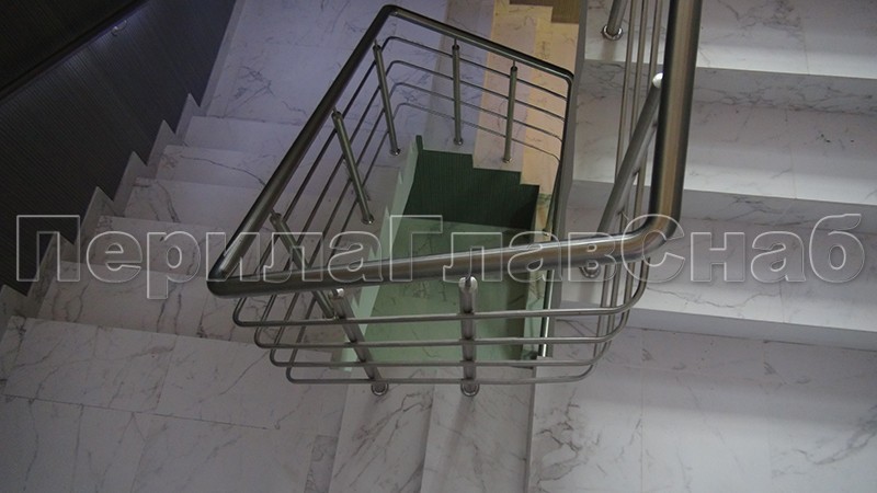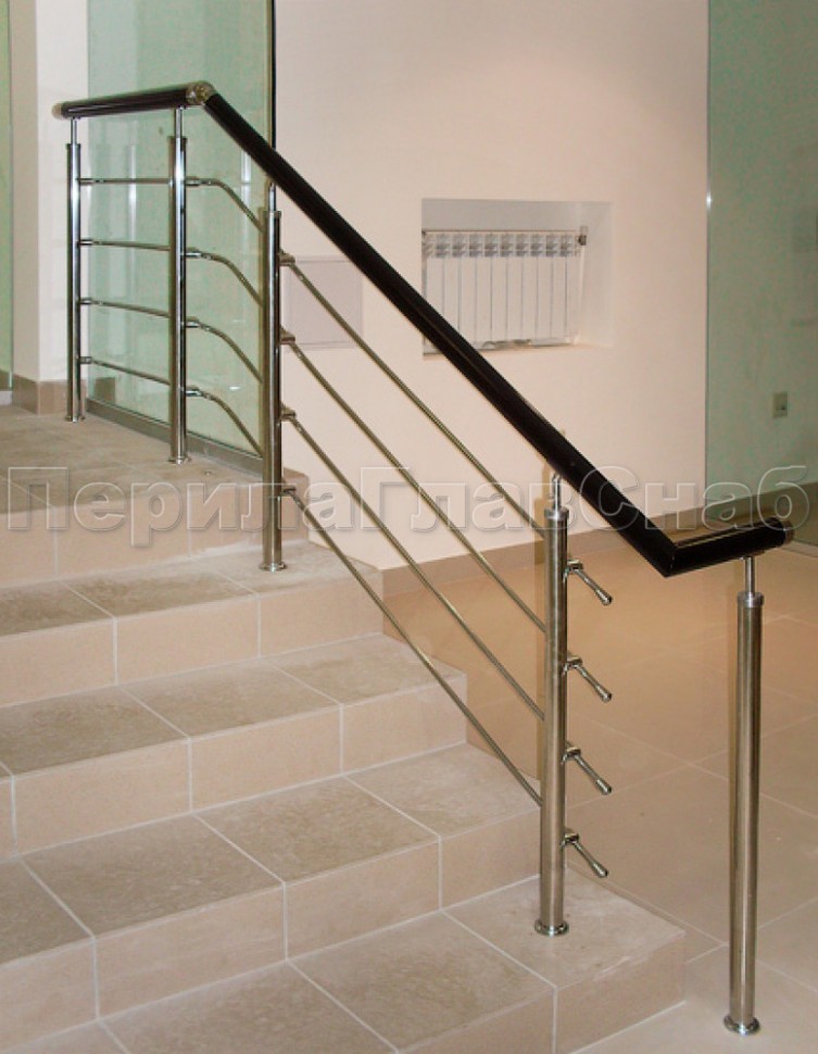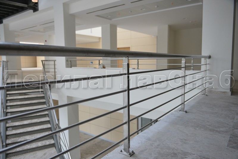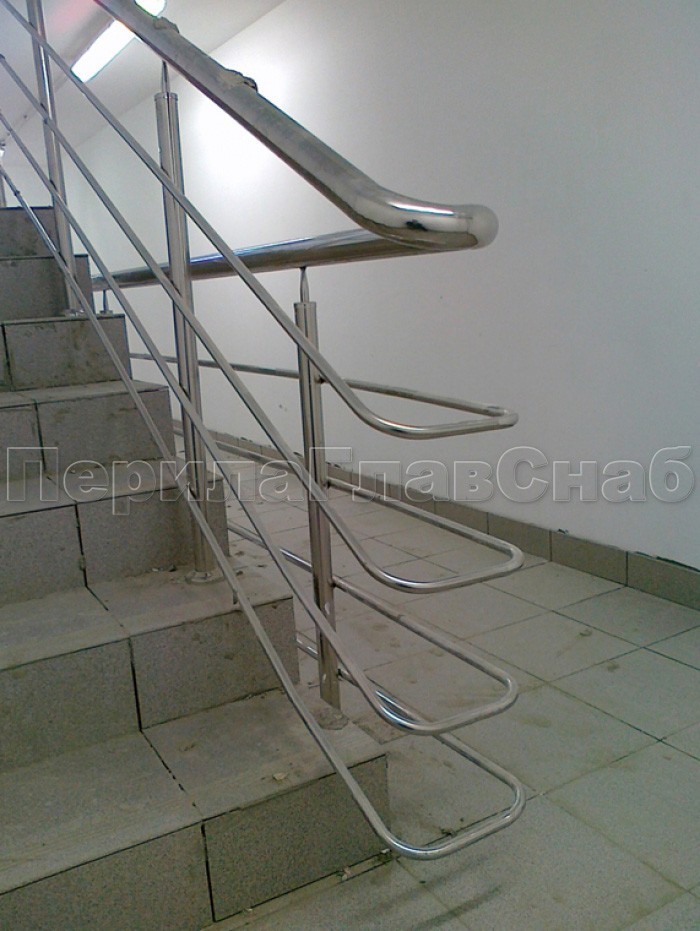 Записаться на встречу Четыре ригеля на держателях, квадратный поручень и круглые стойки