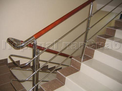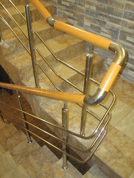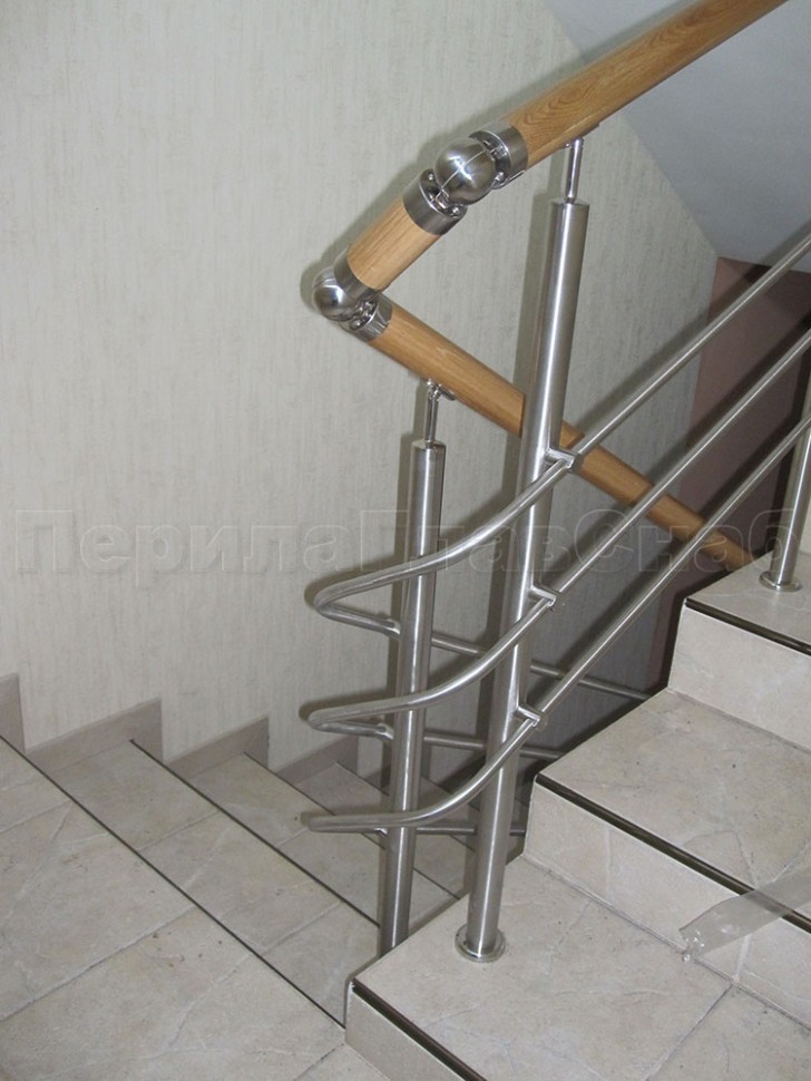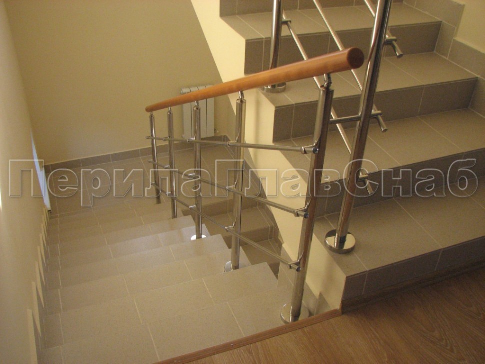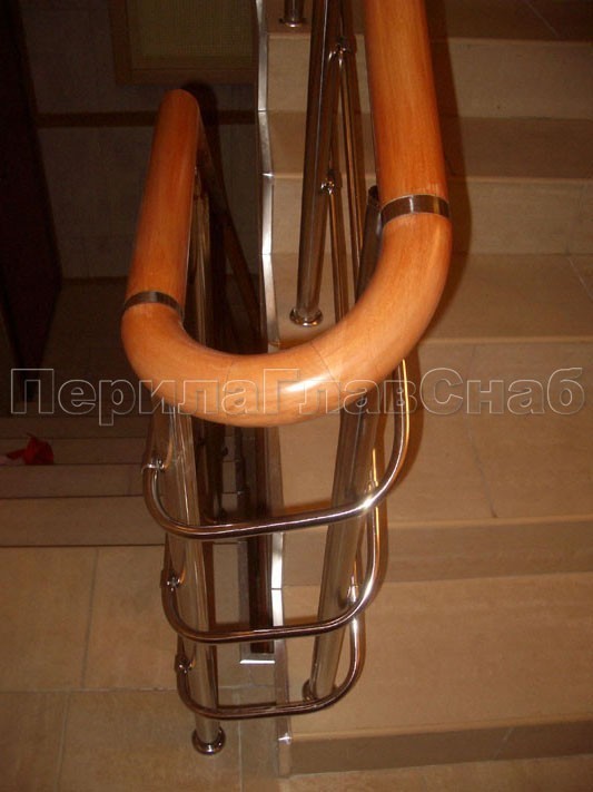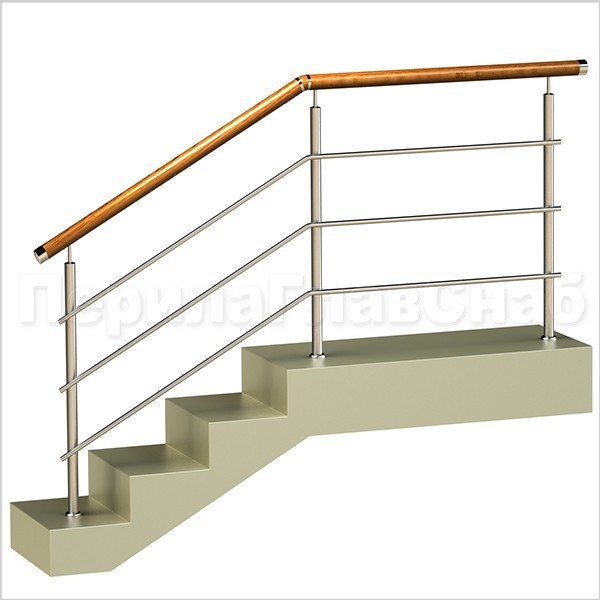Записаться на встречу Три ригеля на сварке, круглый деревянный поручень и круглые стойки