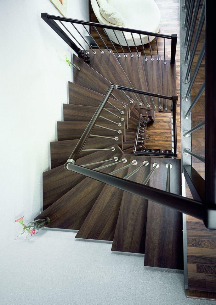 Нержавеющие ограждения без ригелей с круглым деревянным поручнем и стойками с деревянными вставками