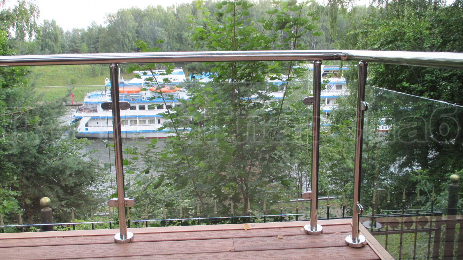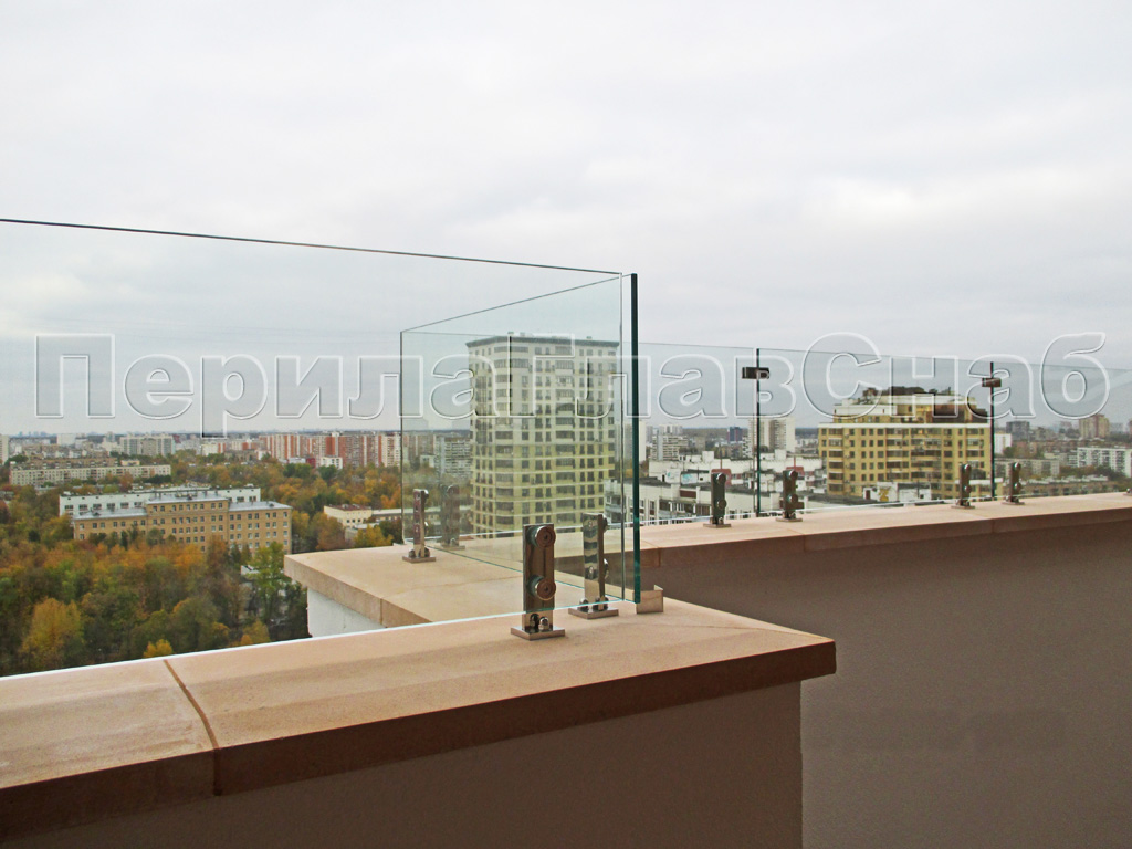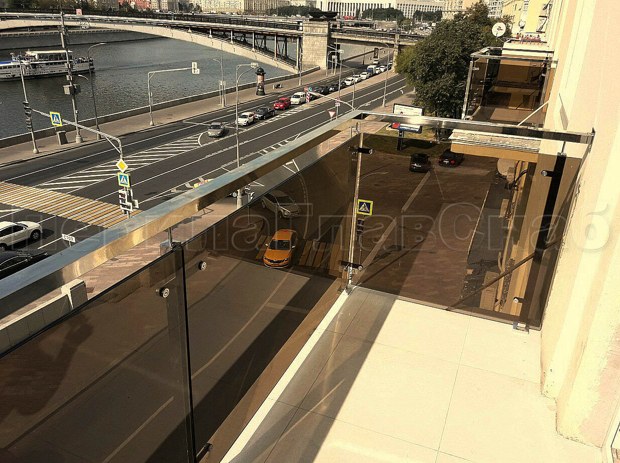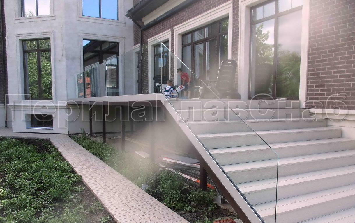 Цельностеклянное ограждение на зажимном алюминиевом профиле для крыльца
