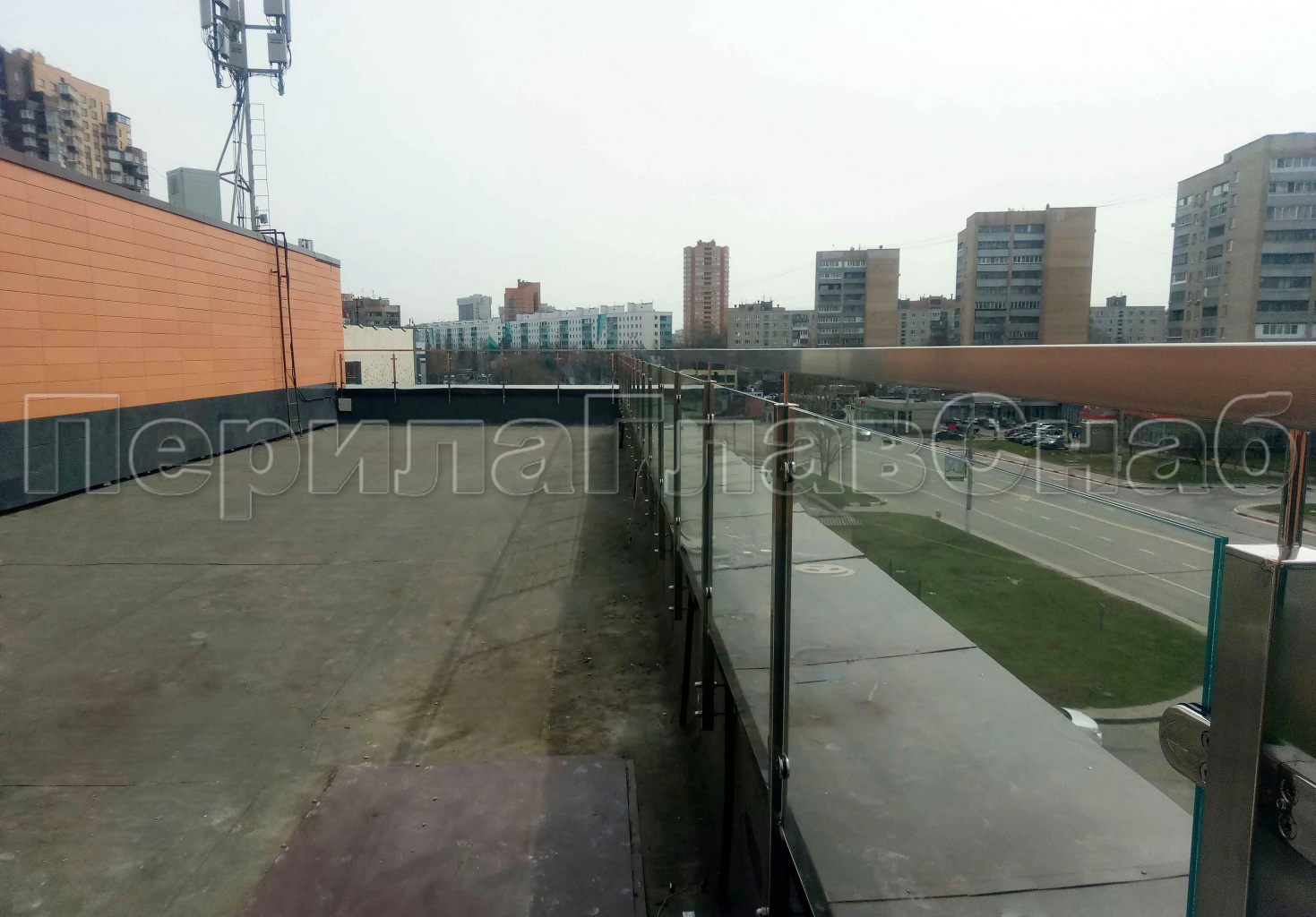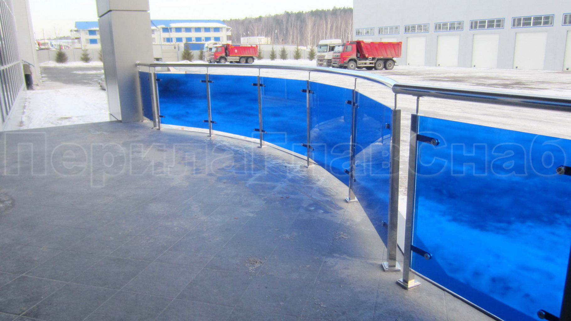 Цельностеклянное ограждение на зажимном алюминиевом профиле для крыльца в Перми. Готовые проекты ПерилаГлавСнаб