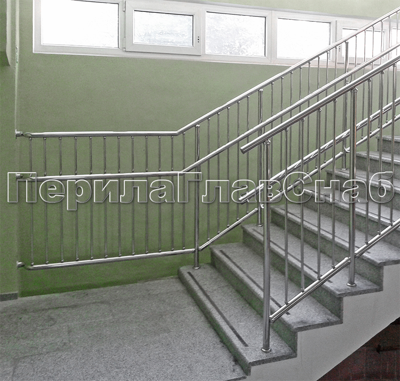 Нержавеющие ограждения для школ и детских садов с вертикальным заполнением “Частокол” - вариант №1 для крыльца