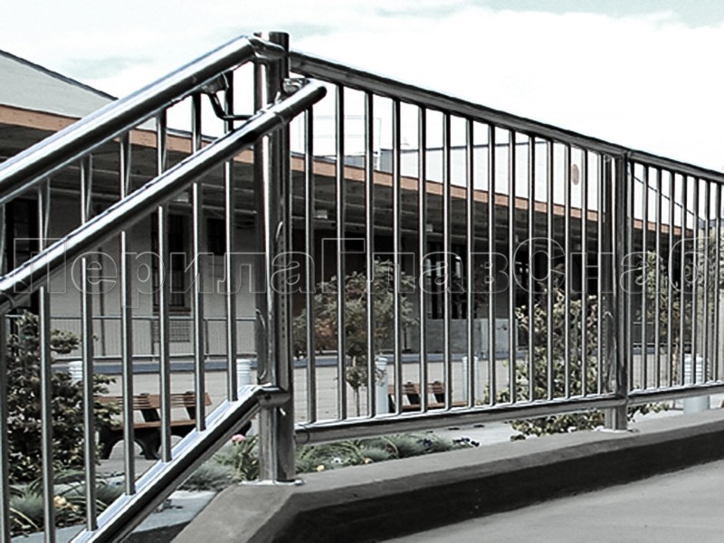 Нержавеющие ограждения для школ и детских садов с вертикальным заполнением “Частокол” - вариант №1 для крыльца