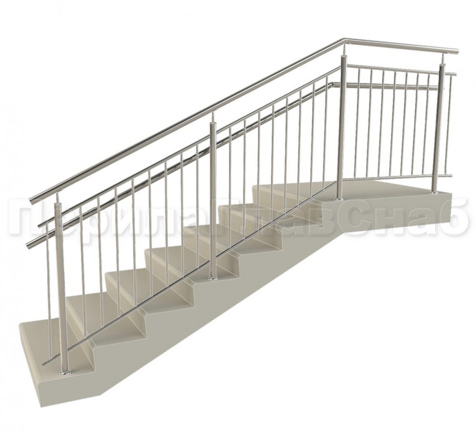 Ограждения с двумя стойками в каждую ступень с пластиковым поручнем и без ригелей