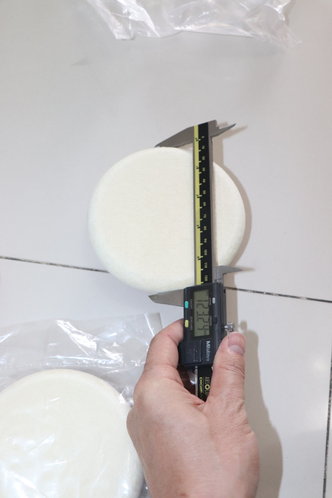 Войлок белый Ø125х20 мм, очищенный, на тарелке, сплошной k428
