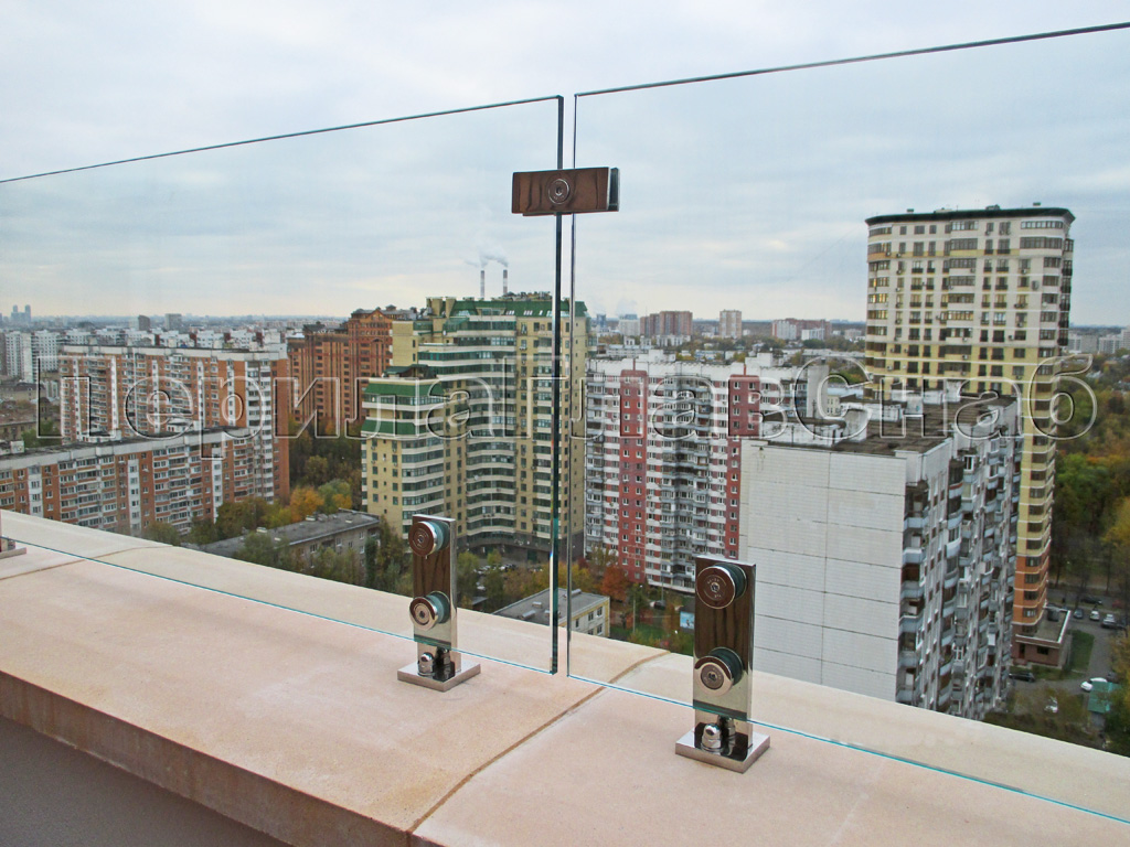 Несущее стекло на балконе. Точечное крепление. Выносной поручень.