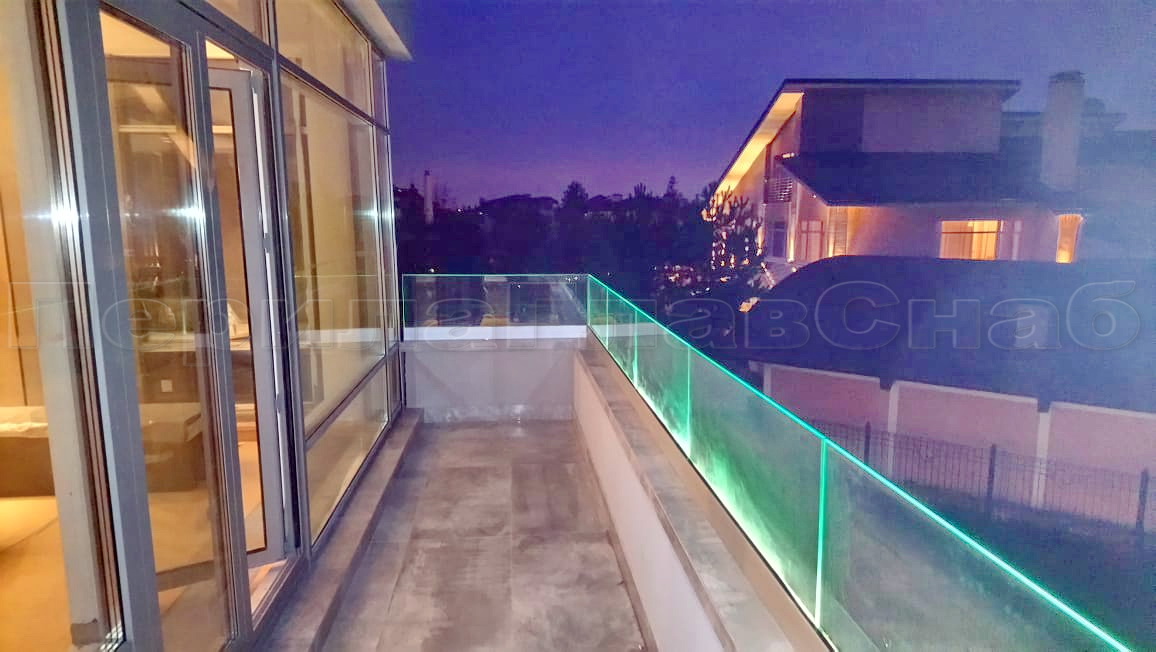 Стеклянное ограждение для балкона без стоек. Крепление на алюминиевом профиле
