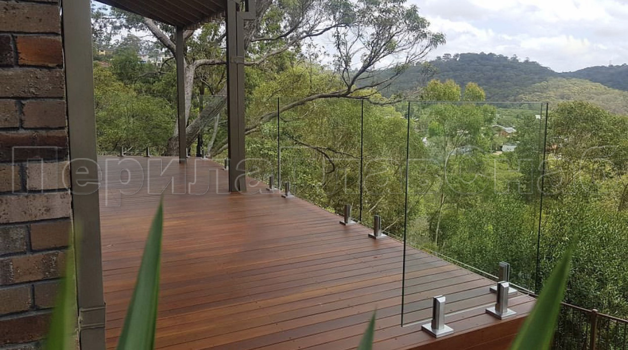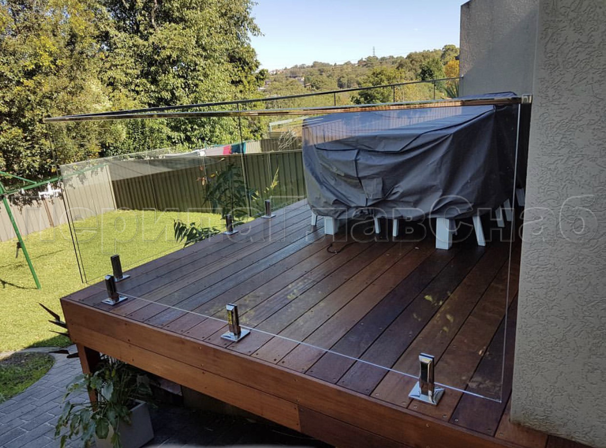 Самые дешевые ограждения из стекла - со стойками на стеклодержателях.
