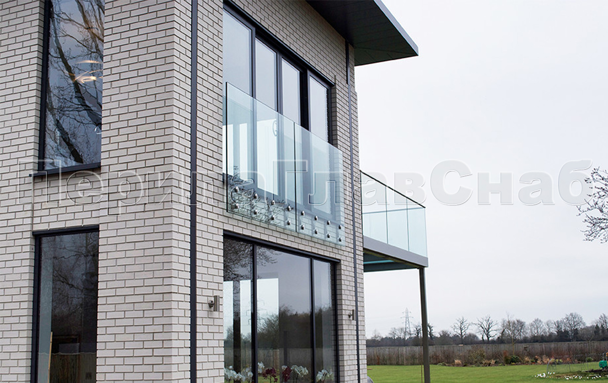 Цельностеклянные перила на балконе частного дома в Подмосковье