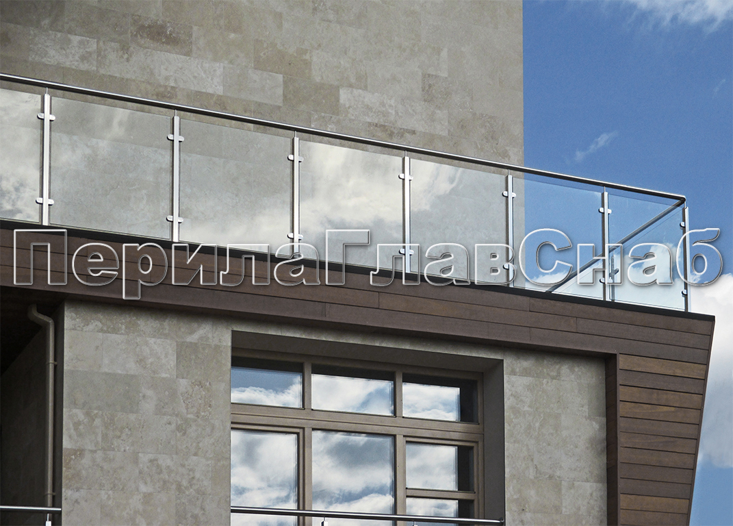 Ограждение из нержавеющей стали со стеклами для балкона в Перми. Готовые проекты ПерилаГлавСнаб