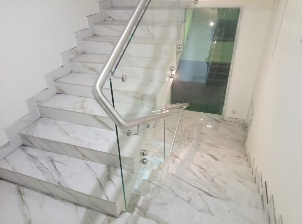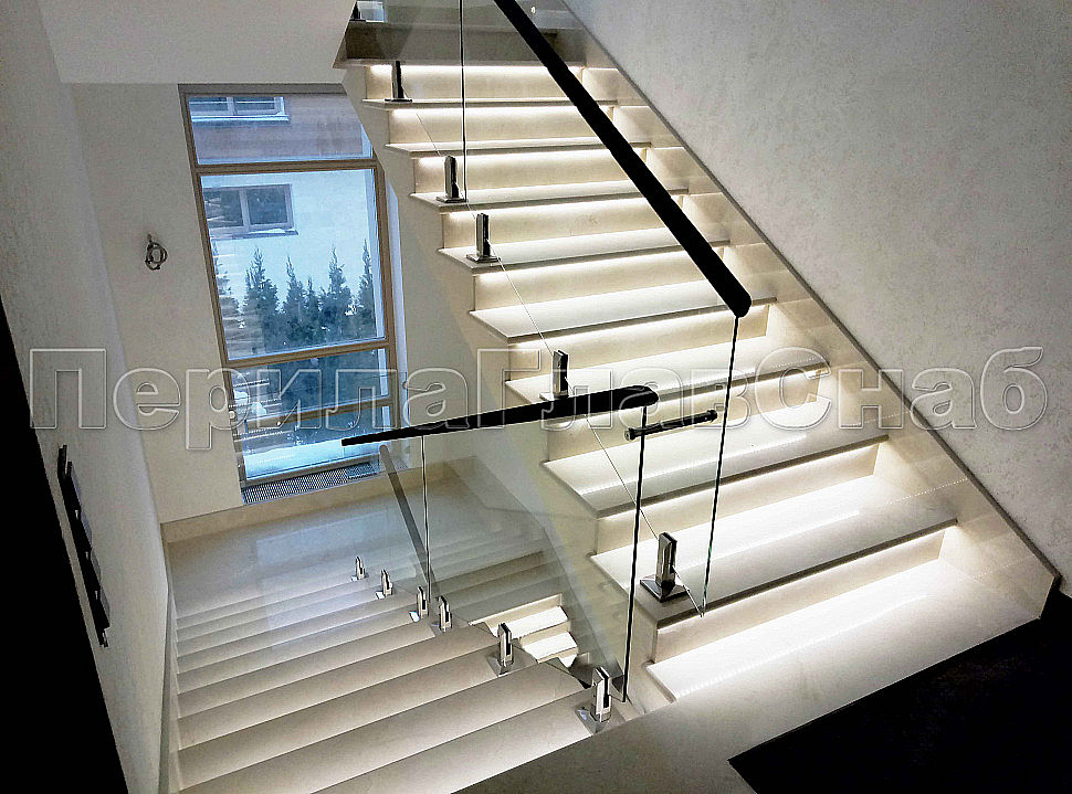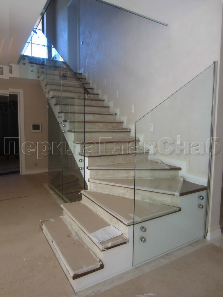 Виды стеклянных ограждений лестничных маршей и площадок (с фото):