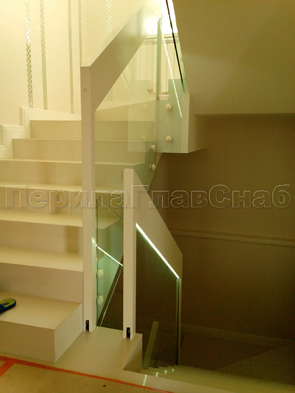 Стеклянные перила для лестничных маршей в подмосковном коттедже.