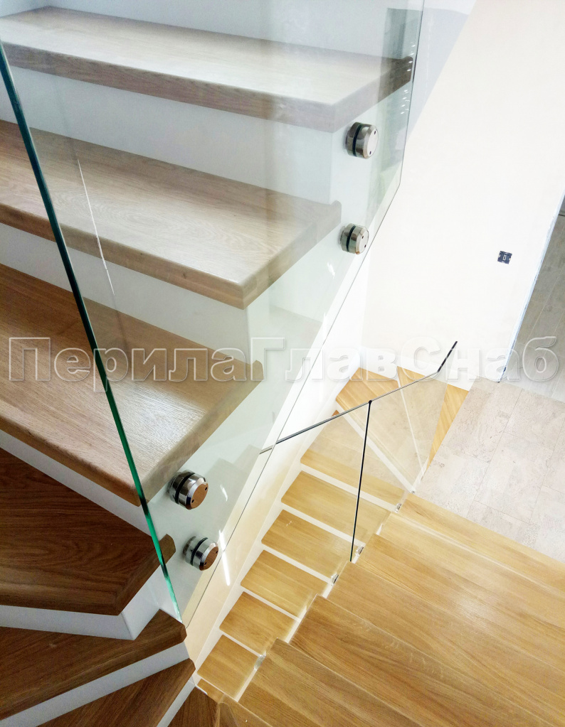 Наиболее популярные решения цельностеклянных ограждений лестничных маршей: