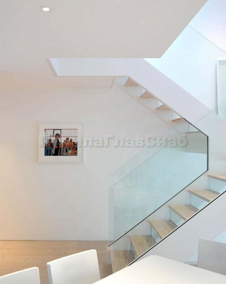Ограждение с квадратным деревянным поручнем на точечном креплении на лестнице
