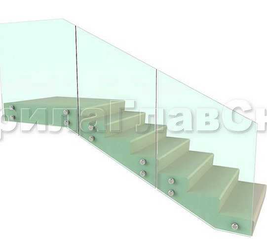 Ограждения лестницы без поручня с зажимными стеклодержателями и стойками