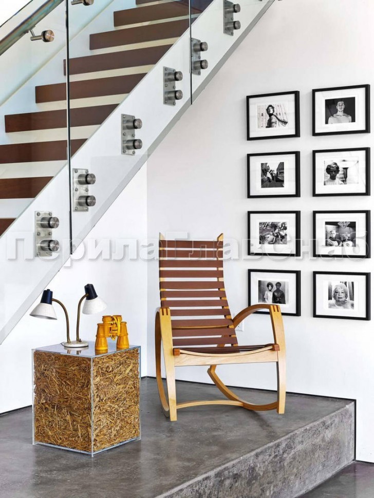 • Самый интересный вариант - установка защитного профиля на кромку стекла и специального выносного поручня.