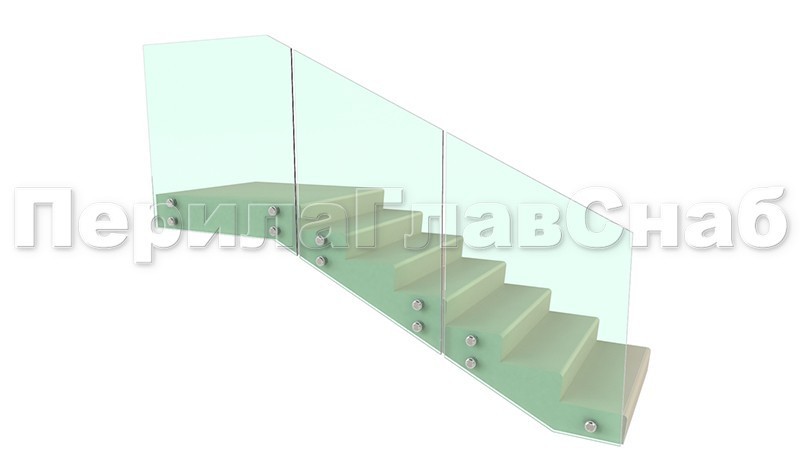Ограждения лестницы без поручня с зажимными стеклодержателями и стойками