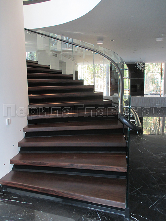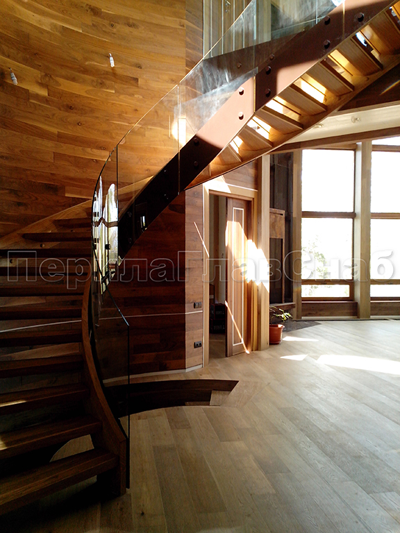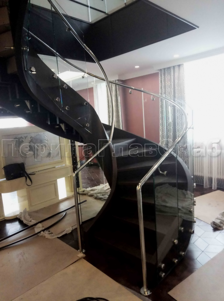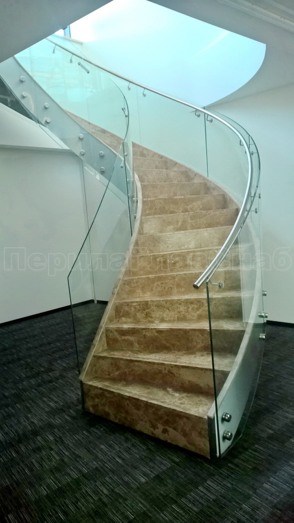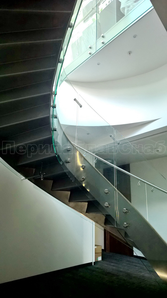 Стеклянные ограждения винтовой лестницы и баллюстрады в Перми. Готовые проекты ПерилаГлавСнаб