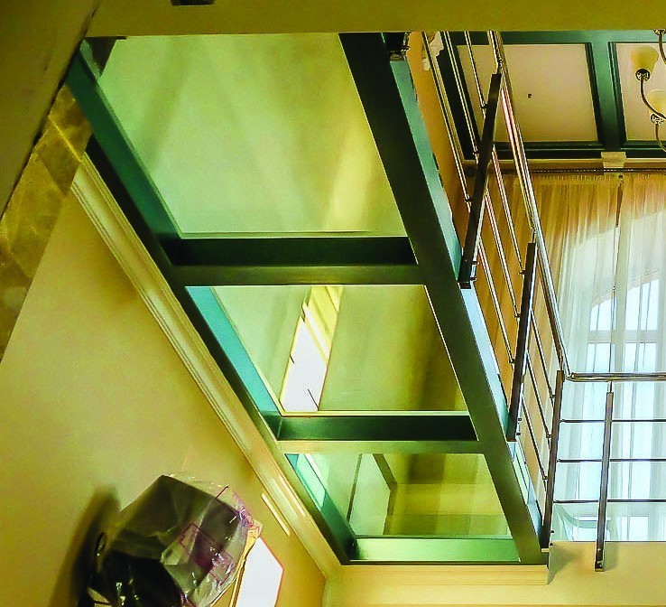 Стеклянное перекрытие из матового стекла на внутреннем балконе